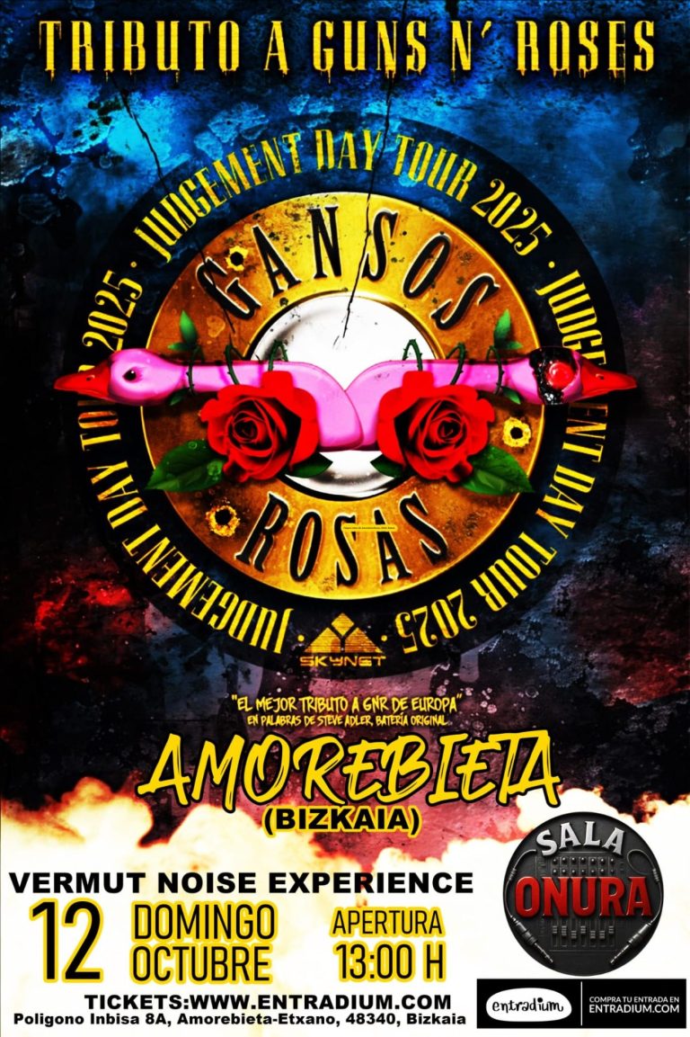 La mejor banda tributo de Europa a GUN'S N ROSES , según STEVEN ADLER el batería original de la banda angelina, llegan a Amorebieta para ofrecer una sesión especial de vermut para toda la familia .